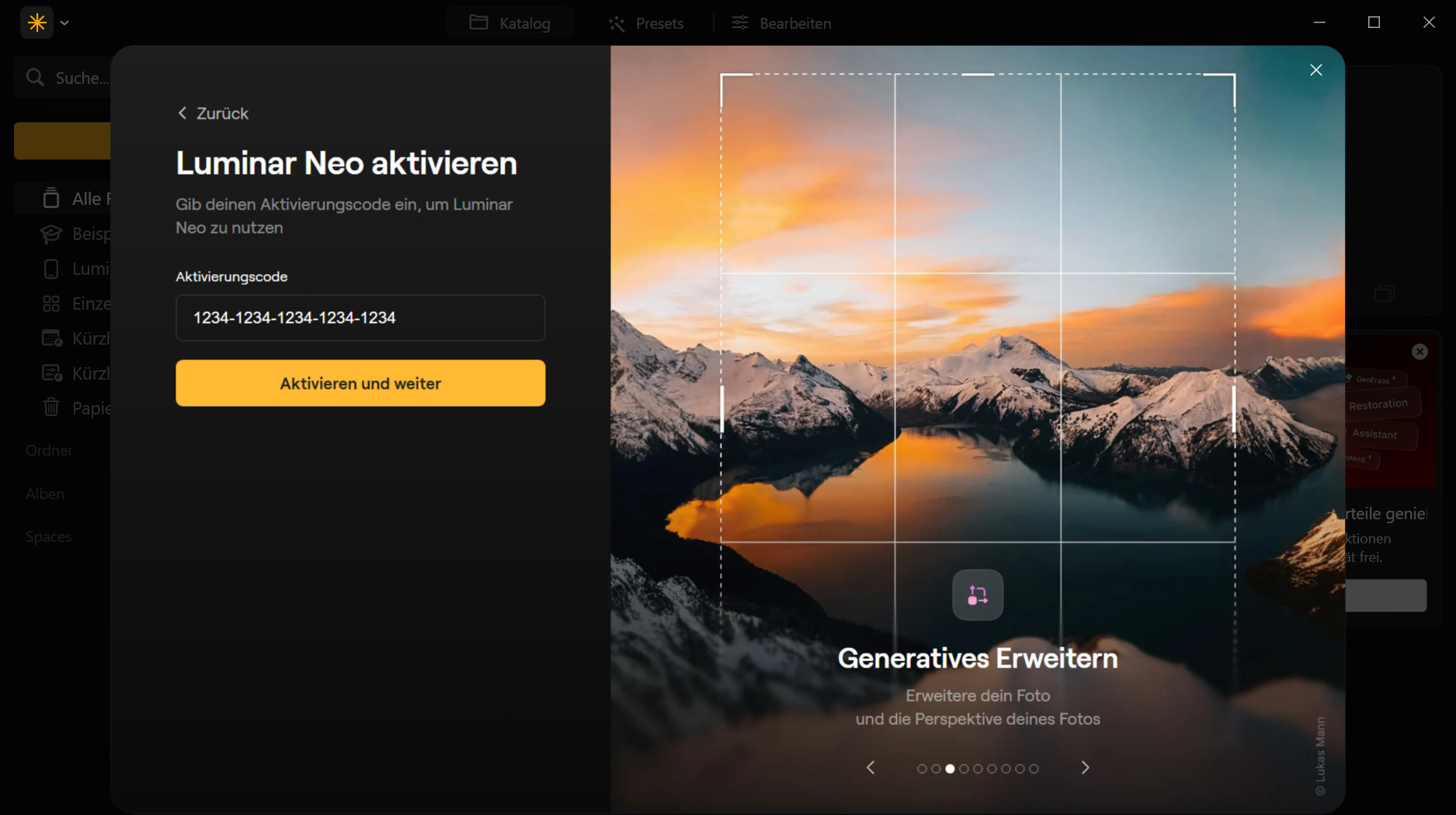 Die Aktivierung von Skylum Luminar NEO (Max) mittels Aktivierungscode muss nur EINMALIG durchgeführt werden.
